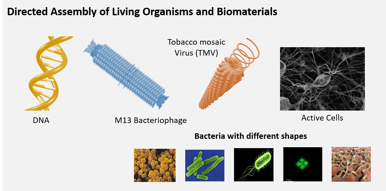 Directed self-assembly of biomaterials and functional nanomaterials in Soft Condensed Matter provides a fascinating tool for producing a new generation of advanced materials that combine several properties and may respond to external conditions. The goal of our research is to develop new mechanisms of directed assembly and combine these tools with functional nanomaterials to generate multi-functional hybrid systems with unique properties. By exploiting these fundamental insights, and using colloidal buildings blocks of various levels of complexity, we explore the possibility of creating a variety of reconfigurable structures with rich properties. The study of these systems will offer important insights for the design of novel "smart" applications, including biochemical sensors, self-assembled microrobots, displays, microlens arrays, photonic nanomaterials and optoelectronic devices.